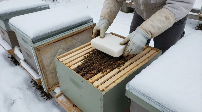 La pratique courante consiste à placer le bloc de fondant directement sur les barres supérieures des cadres, juste au-dessus du cluster d'hiver. Ce placement n'est pas un accident. Il permet aux abeilles d'accéder à la nourriture avec un minimum de mouvement, sans briser leur cluster générateur de chaleur. La chaleur montant des abeilles aide même à ramollir le fondant, le rendant plus facile à consommer.