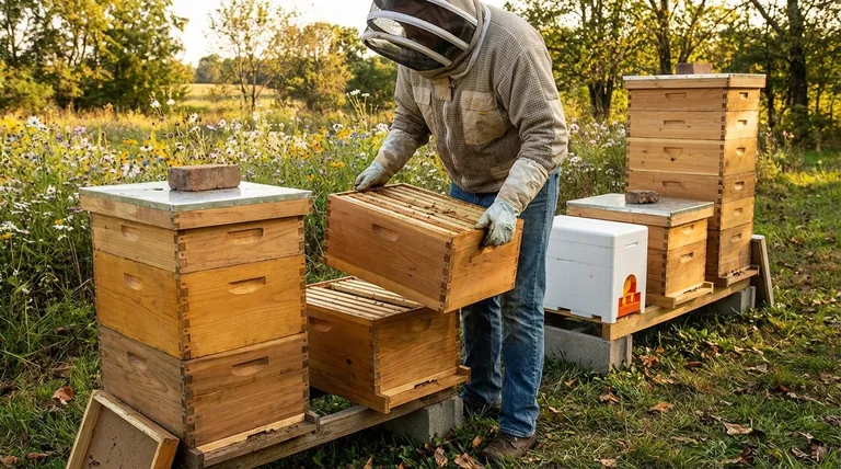 L'avantage principal des hausses moyennes va au-delà d'un simple rapport poids/volume. L'adoption d'un système « tout-moyen », où chaque corps de la ruche est de la même taille, offre un niveau de standardisation puissant qui simplifie presque tous les aspects de l'apiculture.